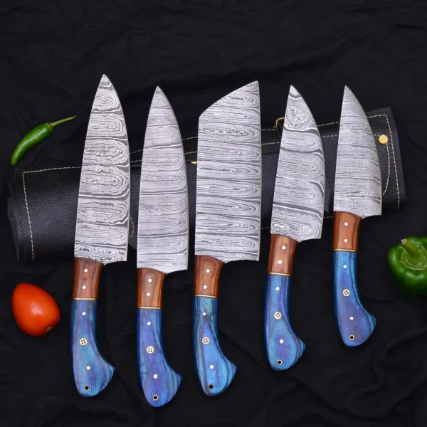 Hand Forged Damascus Steel Chef Set 5 Pcs, Damascus Knife Set, Damascus Chef’s Knife Set, Damascus Kitchen Knife Set