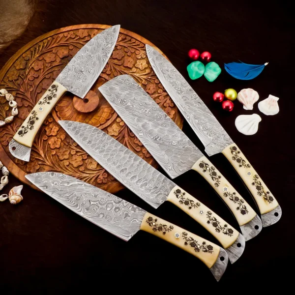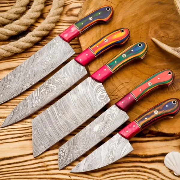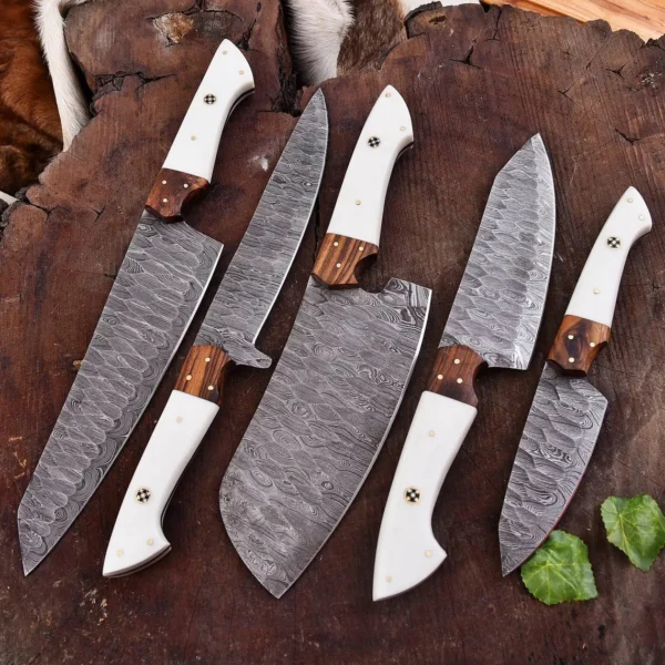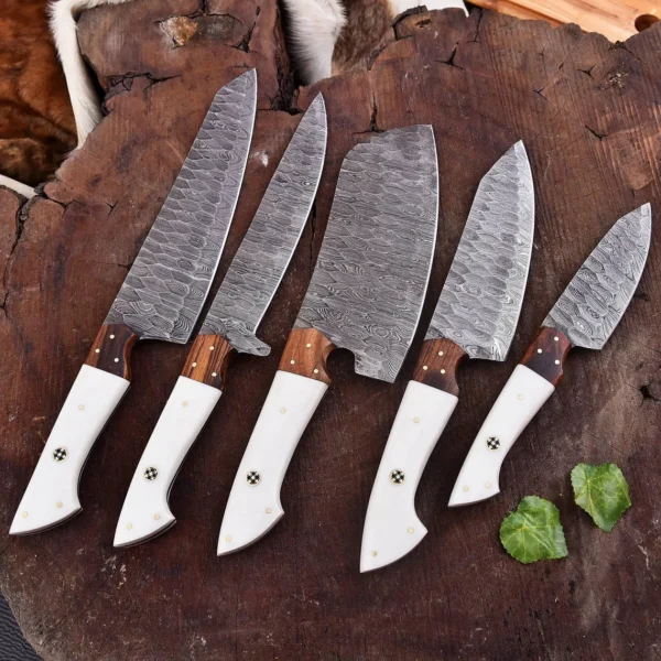 Hand Forged Damascus Steel Chef Set 5 Pcs, Damascus Knife Set, Damascus Chef’s Knife Set, Damascus Kitchen Knife Set