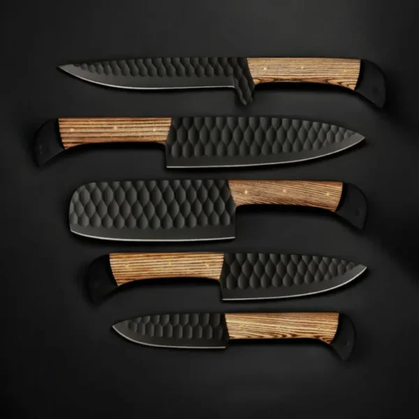 HAND FORGED Damascus Chef Set Of 5 Piece’s ,Custom Handmade Chef Set , Handmade Damascus Chef Set