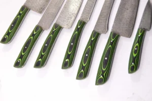 Custom Hand Made Forged Damascus steel Hidden tang KITCHEN CHEF SET KNIFE with Canvas Micarta HANDLE